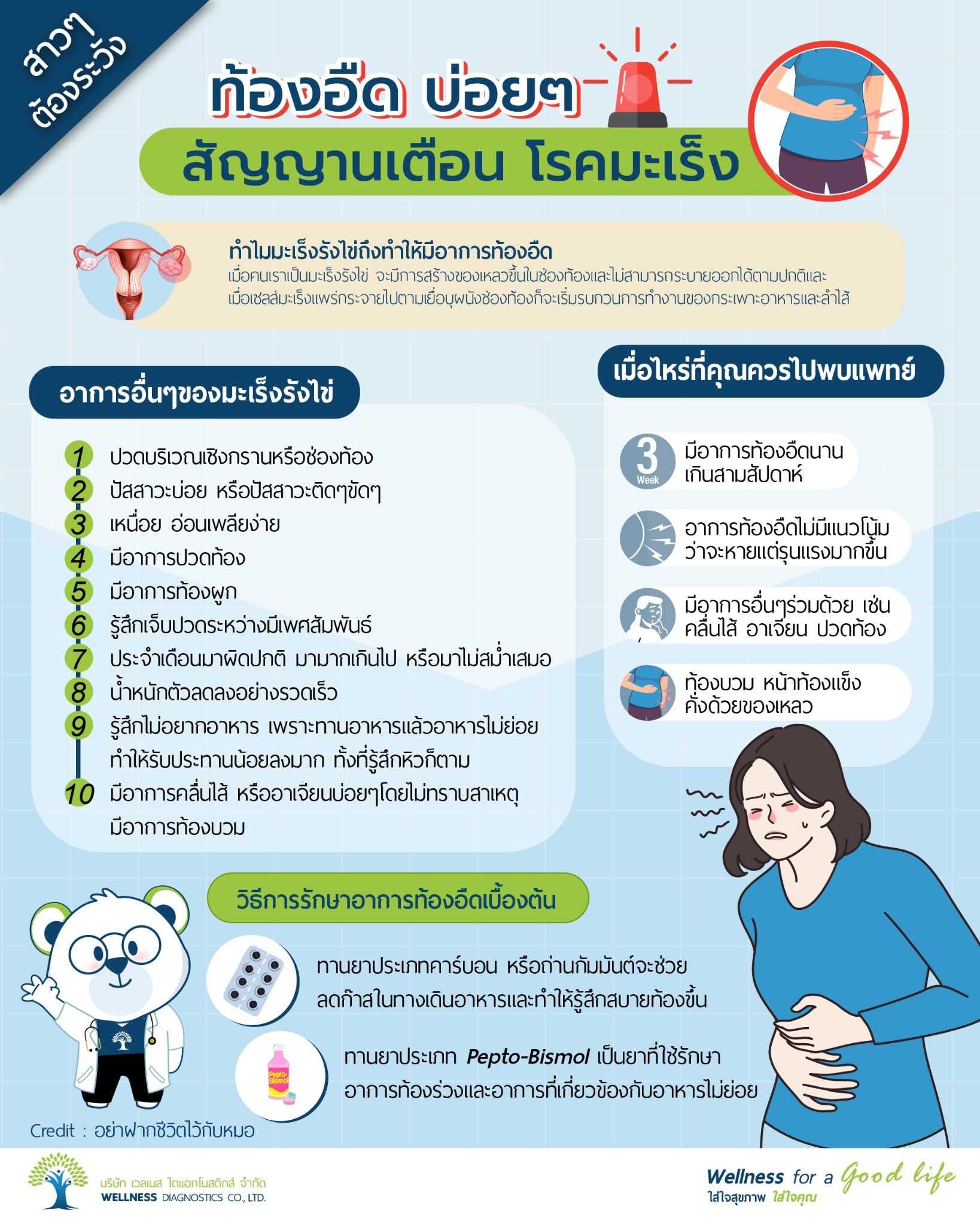 1.มีอาการท้องอืดนานเกินสามสัปดาห์